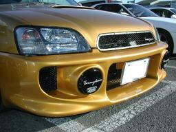 トミーカイラのフロントバンパーを装着した貴重なマスタードマイカ色のレガシィB4。
