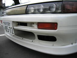 左)加工フロントバンパー 右)車高調