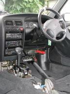 左)運転席(センターコンソールを剥がした状態です) 右)後部座席(シートを剥がした状態です)