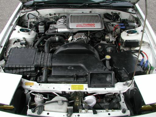 2ロータリーエンジンにツインスクロールターボを合わせた人気のFC3S。